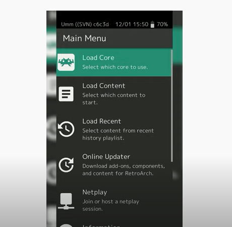 Nintendo - NES cores in this case the very first one we'll do is the option most of these will work just fine so if you want to test them out you can feel free to do that so all you need to do is click on the first Nintendo - NES core once you have this done we're gonna be brought back to the main menu were going to be clicking on load core and now we're gonna be selecting the core that we just downloaded from the device once we have this done you should see the name scrolling on the top left of the core you just set up so at this point I'm gonna mention that I'm not gonna be showing you how to download games but games are really easy to find a quick Google search will help you out there's no real restrictions on the type of games you'll need but you will need games in the DAAD nes formats and i'm gonna be showing you how to open and load them directly right now so this is where's the archiver might come in handy depending on what format you get your games in most likely they will be in a dot zip you will need to extract them out with the zip file for C archiver to be able to load them up and that's what we can do directly in archiver in this case you can see I have my NES games right here